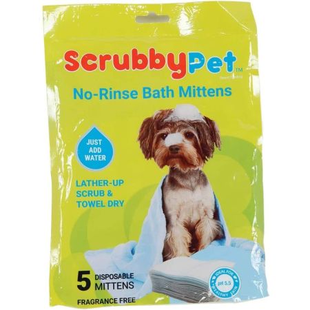 Keep your pets clean and fresh at home and on the go Scrubby Pet Mitts are so easy to use. just add water, scrub and towel dry No rinsing required Disposable, fragrancefree mitts are made with PH balanced quality ingredients that are healthy for and gentle on your pet's skin. Works on all pets