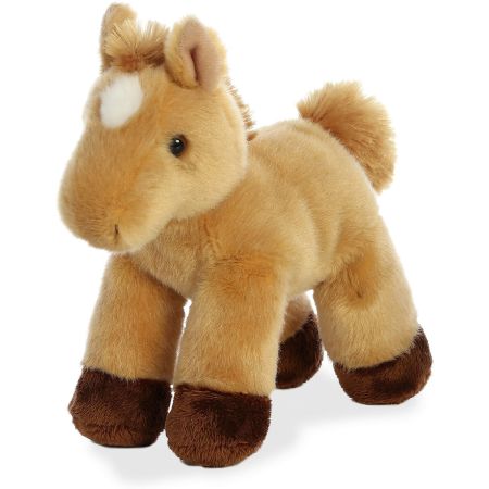 Prancer™, a delightful horse from the Mini Flopsie™ collection by Aurora®, combines endearing charm with snugly comfort. This plush companion features a soft caramel coat, a white star on its forehead, and dark brown hooves, showcasing Aurora's dedication to quality and detail. Prancer™ is more than just a toy; it's a beloved friend perfect for cuddles and imaginative adventures.